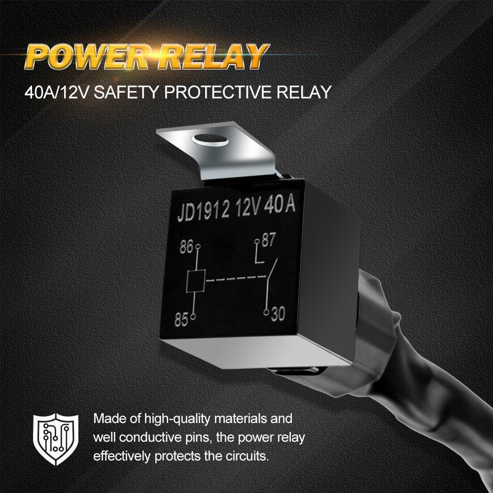 - Power relays with 40A inline blade fuse efficiently protect the circuit when overcurrent or short circuit occurs.