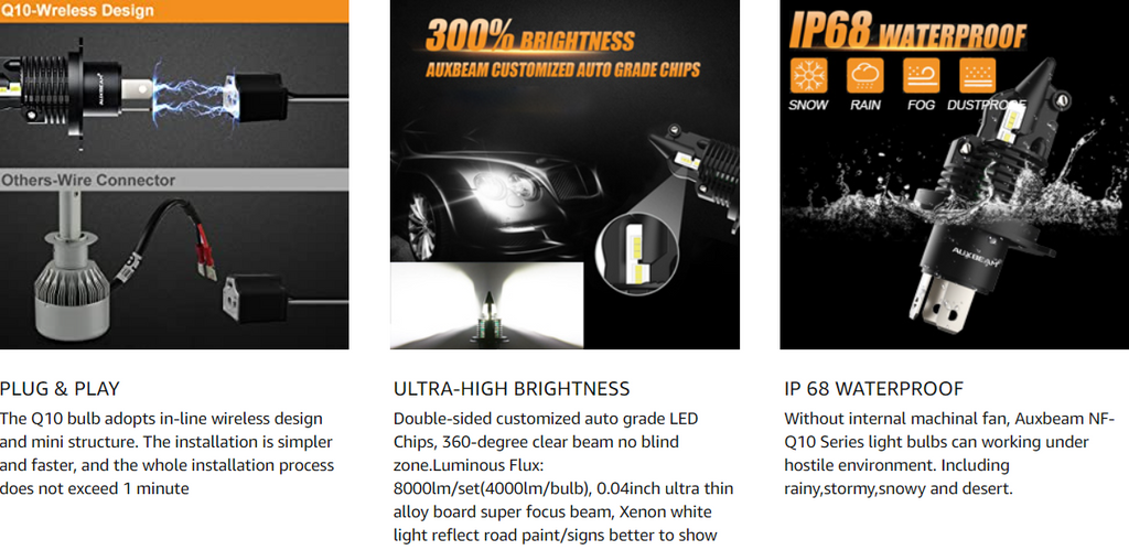 Découvrez les lampes LED For 2005-2011 Toyota Tacoma H4/9003 Q10 Series Fanless&Wireless 1:1 Halogen Size 6500K LED Light Bulbs High Low Beam Bundle, conçues pour améliorer votre expérience de conduite. Avec un éclairage 3 fois plus lumineux que les ampoules halogènes, ces lumières garantissent une visibilité claire et sécurisée sur la route, même dans des conditions météorologiques extrêmes.
