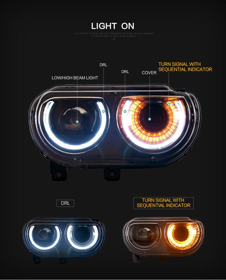 - Fit For 08-14 Dodge Challenger 3th Gen Pre-Facelift Plug and Play Both Stock with Halogen Headlight And Stock With HID/Xenon Headlight
