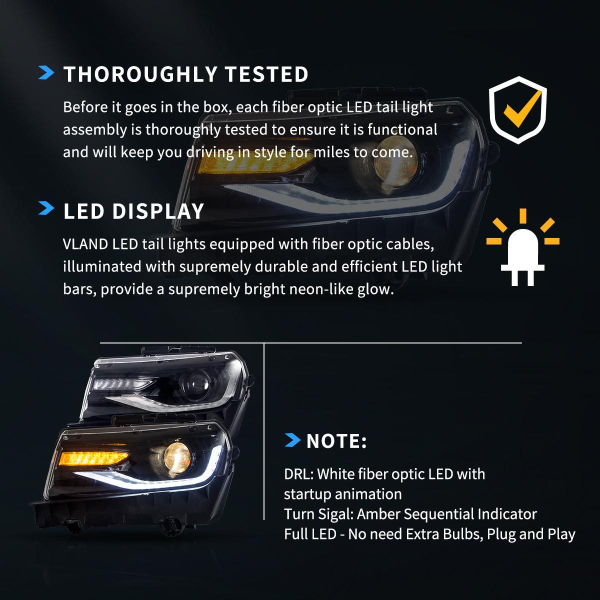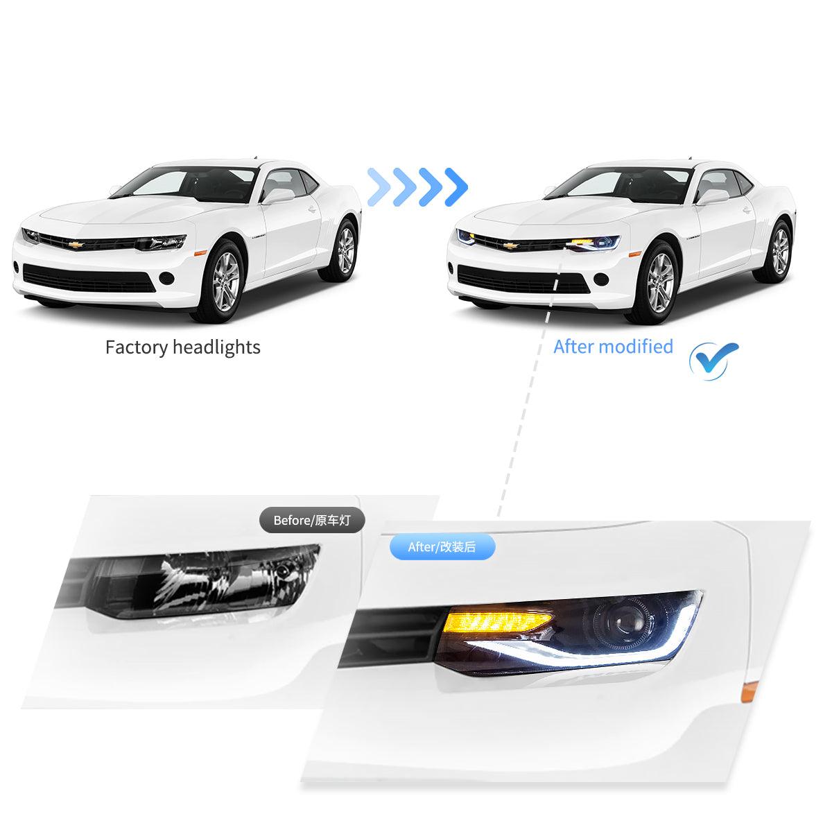 LED Headlight Assembly Dual Beam Projector Black For 2014-2015 Chevrolet Camaro