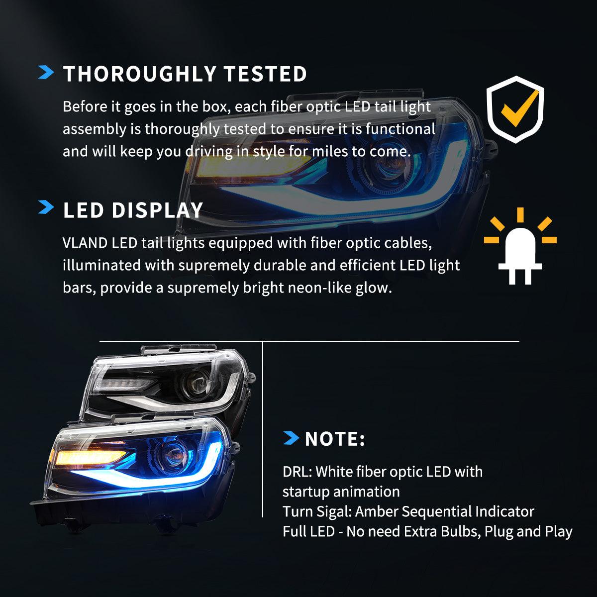 LED Headlight Assembly RGB Dual Beam Projector Black For 2014-2015 Chevrolet Camaro