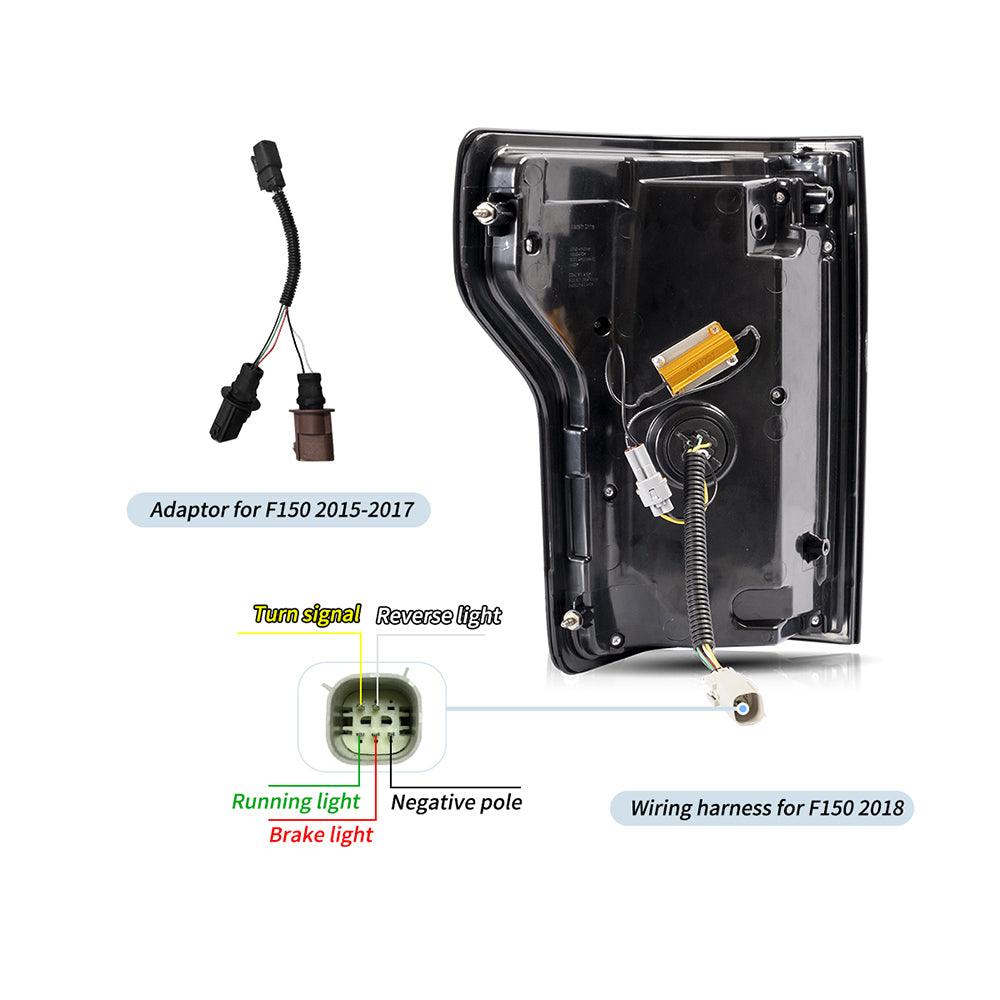 - Fit For 15-20 Ford F150 13th Gen (P552) Plug and Play With Stock Halogen Tail Lights Wiring Adapters For Stock LED Tail Lights (Without BLIS), Not Fit For Stock LED Tail Lights With BLIS