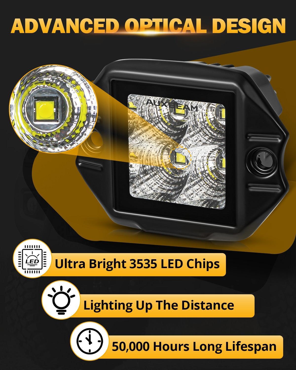 Ultra Brightness: Pod lights can provide up to 4000LM of luminous. The light can illuminate the entire road at night to ensure your driving safety.