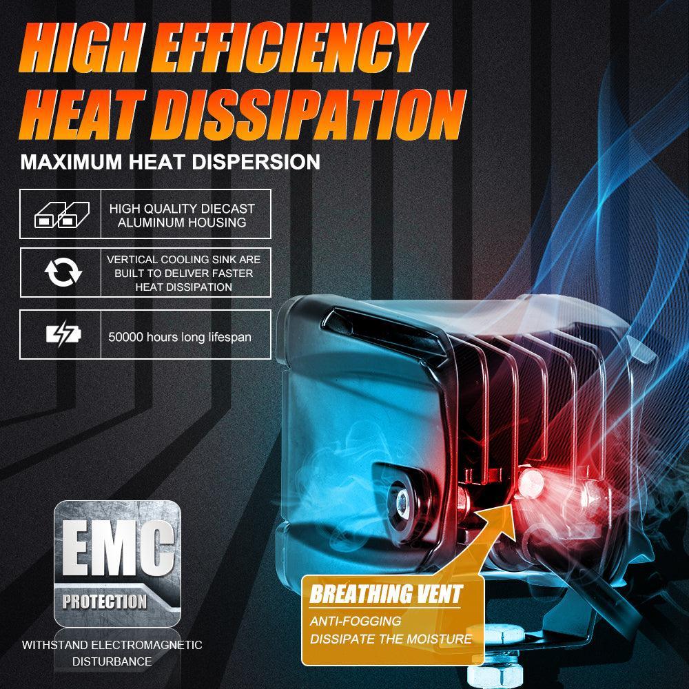 - Made of high-intensity P8 chips and unique UV PC, 4800 lumens and 6500K color temperature, luminous efficiency raise 10%. Much brighter than stock light pods or other light pods, will improve your off-road and night driving experience.