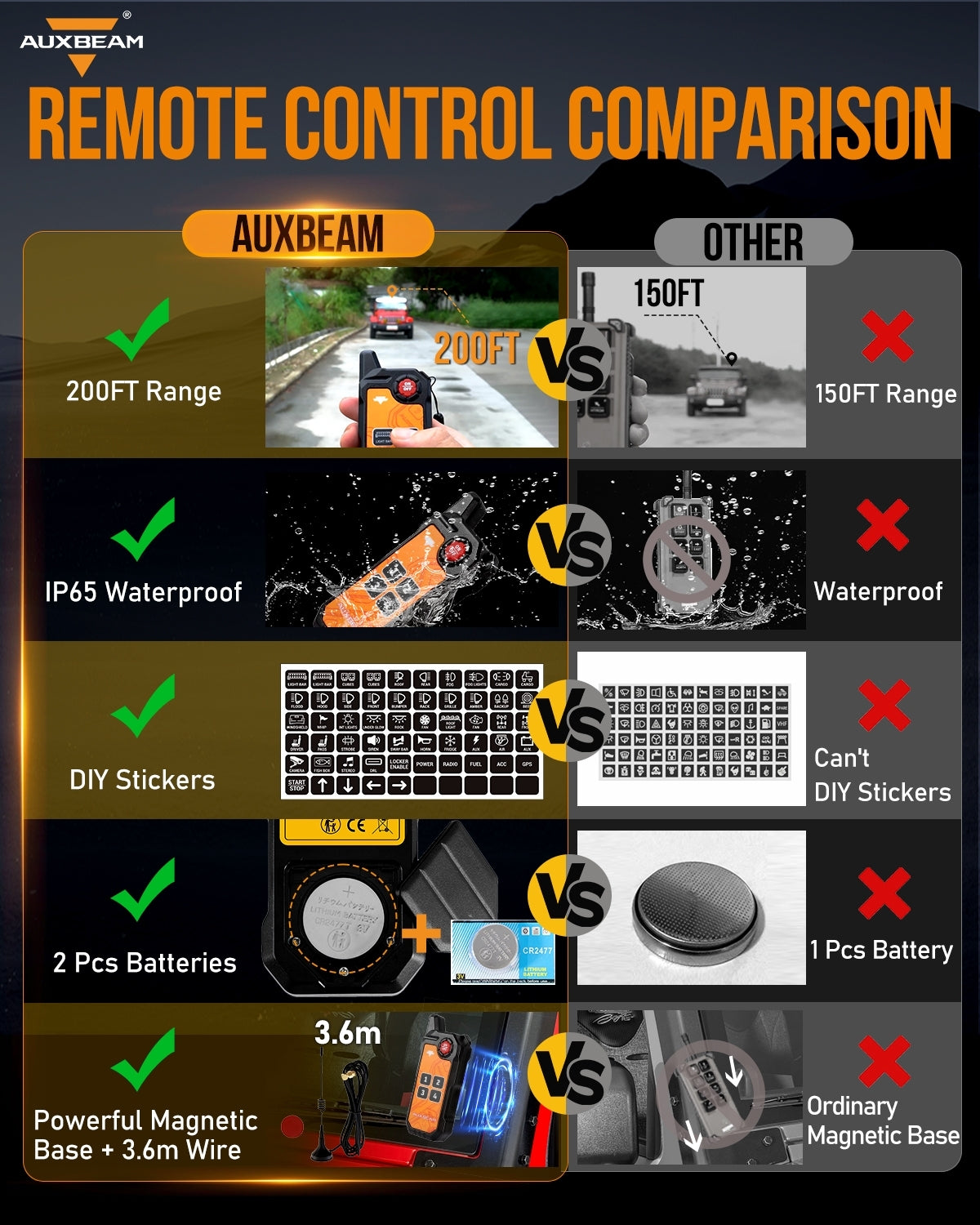 *The wireless remote control has a connection range of up to 200 feet meters.