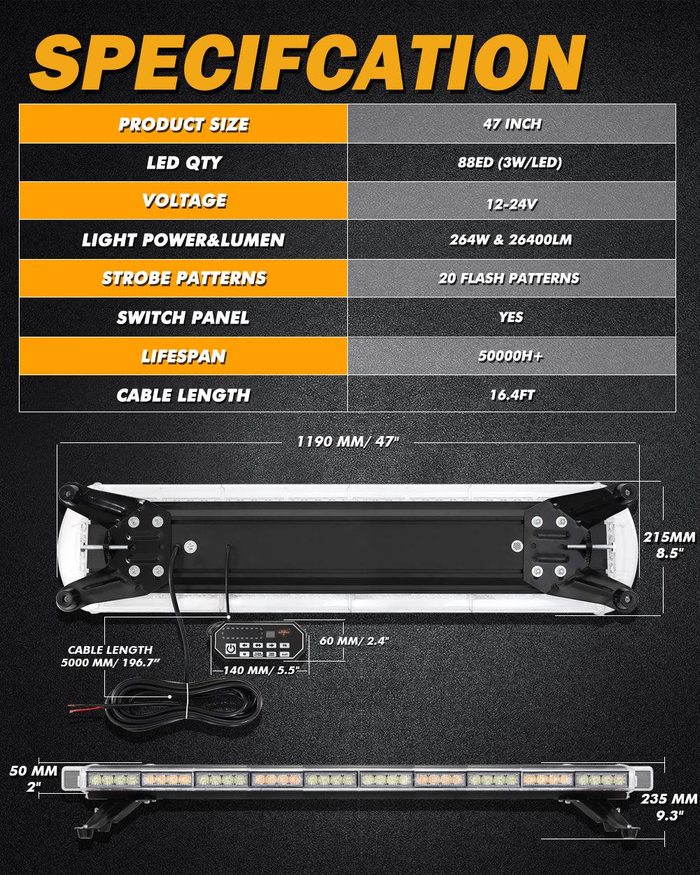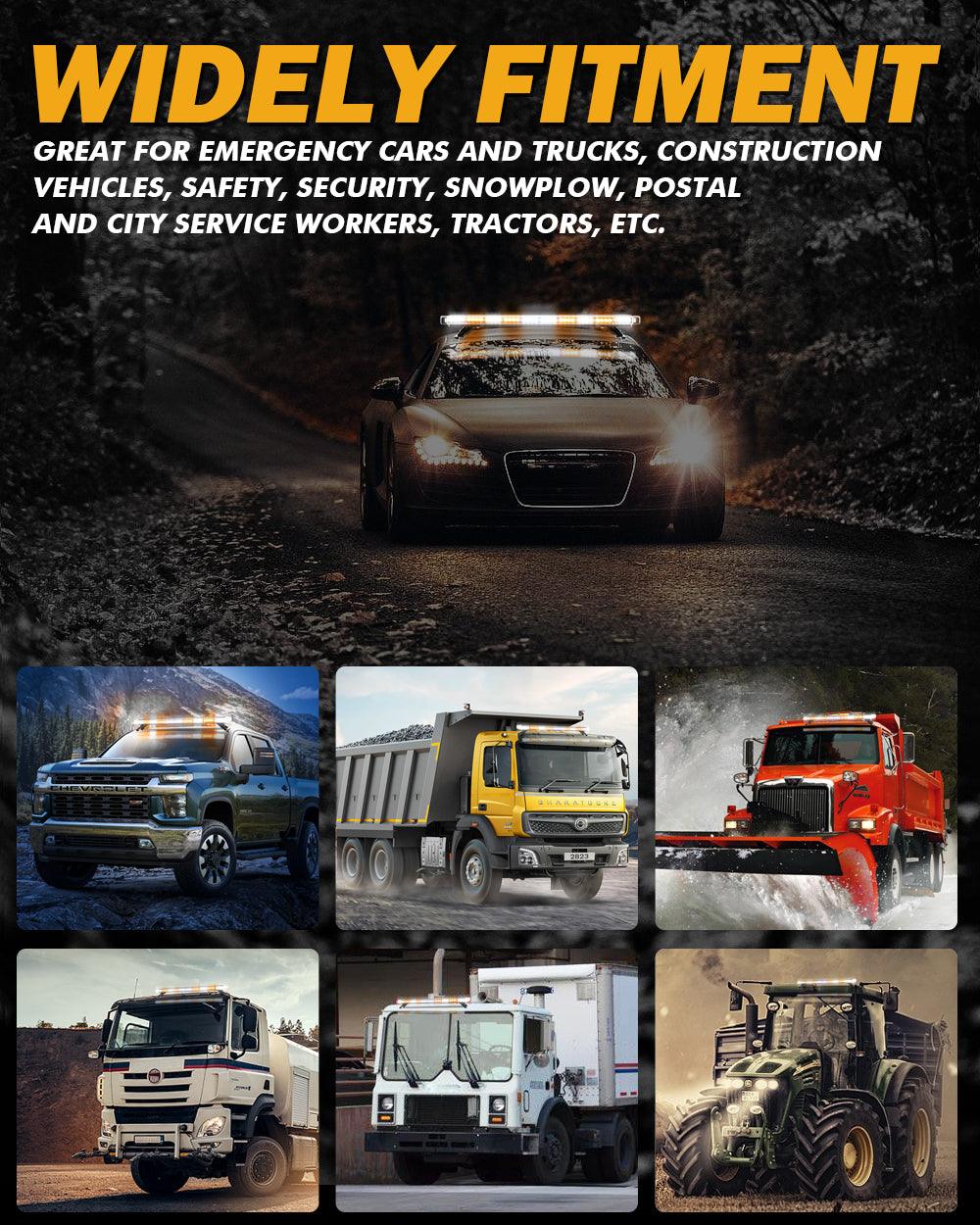 Perfect Bright: This emergency flashing light bar has a total of 88 high-power 3W LED chips. Crystal clear lens for max brightness, visible day and night. Great for law enforcement cars, plow trucks, construction vehicles, tractors, security, snowplow, postal, mail carrier, and city service workers, to warn of potential hazards.