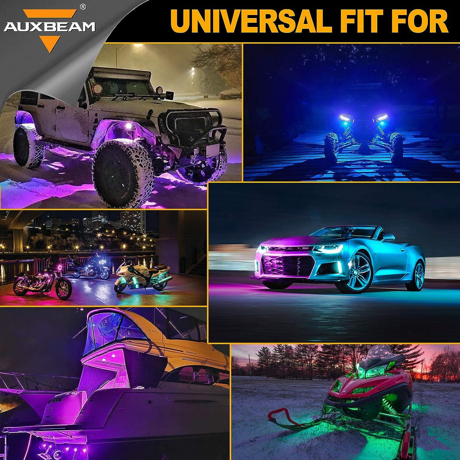 - Widely Used. Auxbeam car underglow lights perfectly to install on your Jeep, ATV, UTV, SUV, Motorcycle, Off Road, Truck, Car, Boat, Dome, etc. Widely used as Puddle Light, Engine Compartment Light, Camper Shell Light, DRL(Daytime Running Light), Backup / Reverse Light, Pickup Bed Light, Dome Light, Foot/Wheel Well Light, etc.