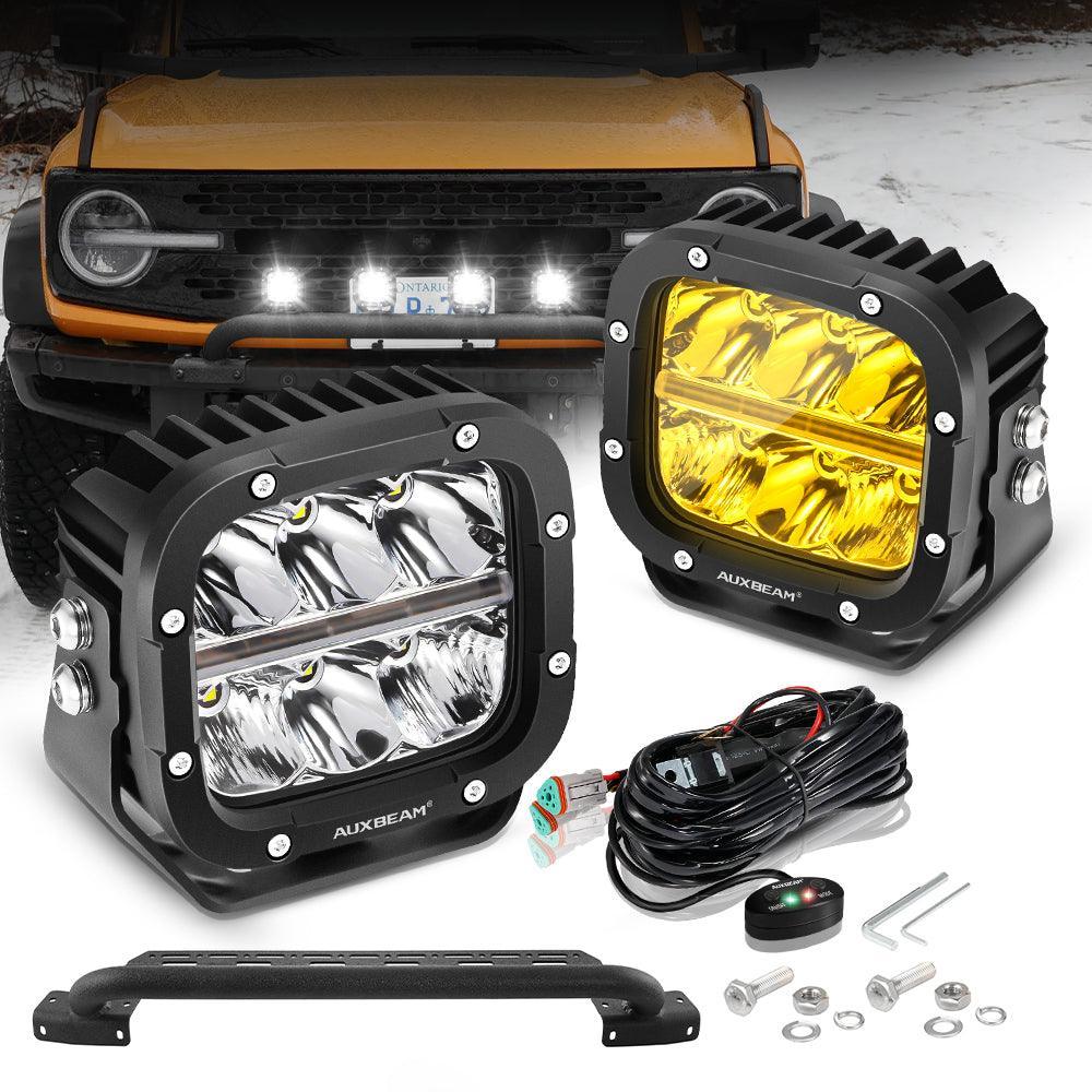 5 Inch 132W White/Amber LED Pods with Amber DRL+Bull Bar For Ford Bronco 2/4 Door 2021 2022