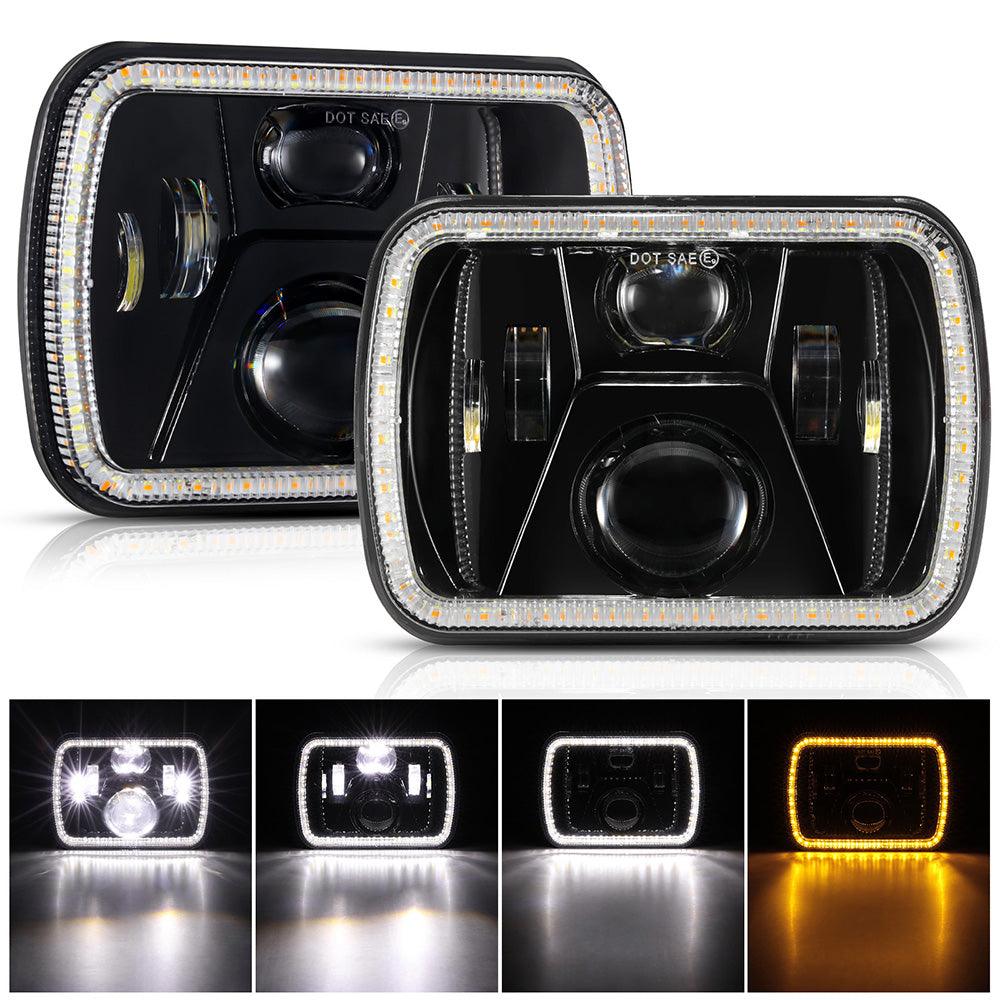 7x6 Led Headlights Rectangular Headlamps High Low Sealed Beam w/DRL Turn Signal DOT Approved for Jeep Wrangler YJ Cherokee XJ Ford Chevy GMC Toyota