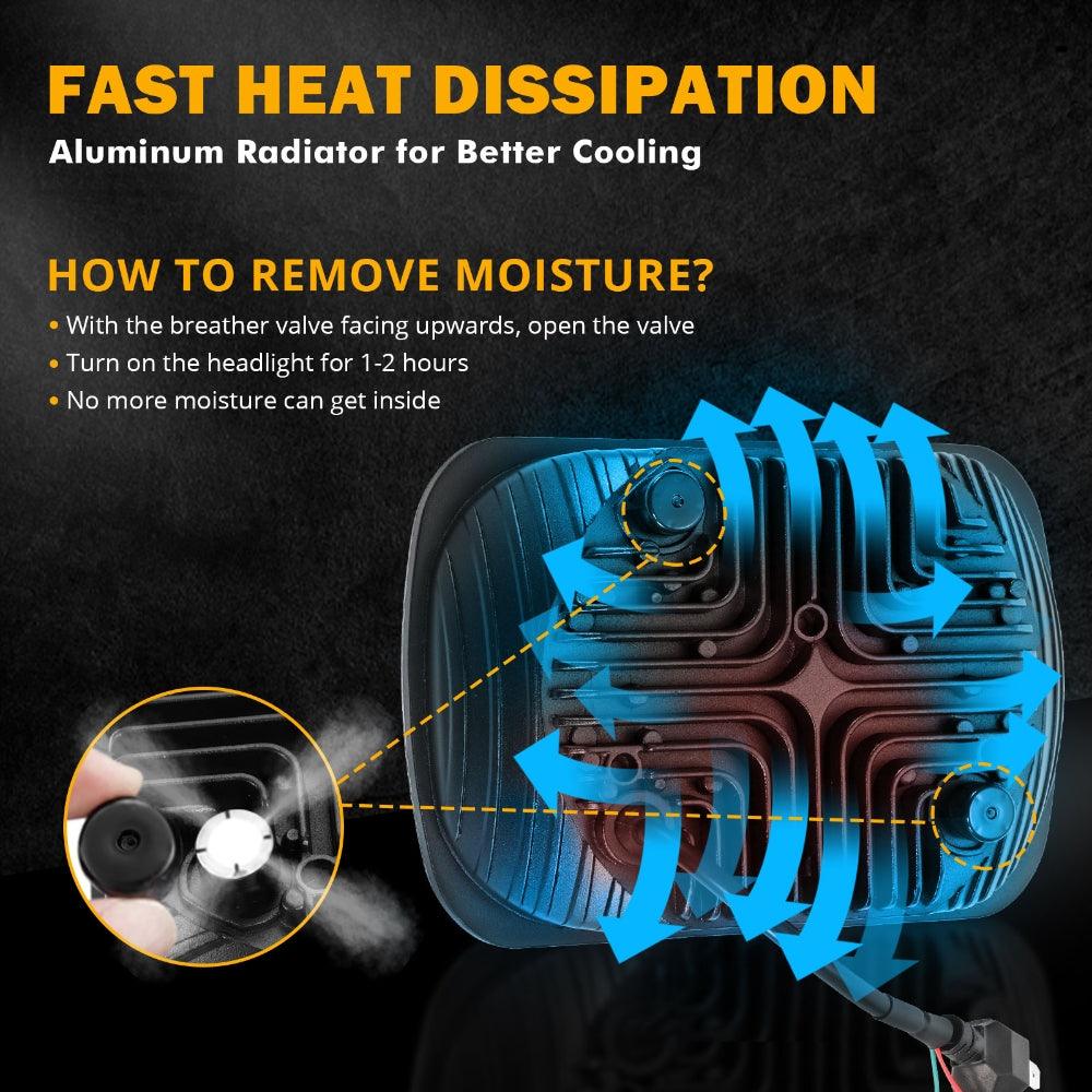 LONGER LIFESPAN: Each Auxbeam 7x6 LED headlight is equipped with 4 moisture-proof breathing valves and boasts an IP68 waterproof rating, ensuring they function normally in any weather condition. This significantly extends their lifespan, maintaining brightness even after 10 years of use. Additionally, our h6054 LED headlights have built-in EMC anti-flicker integrated with the circuit board, perfectly preventing flickering and ensuring no interference.