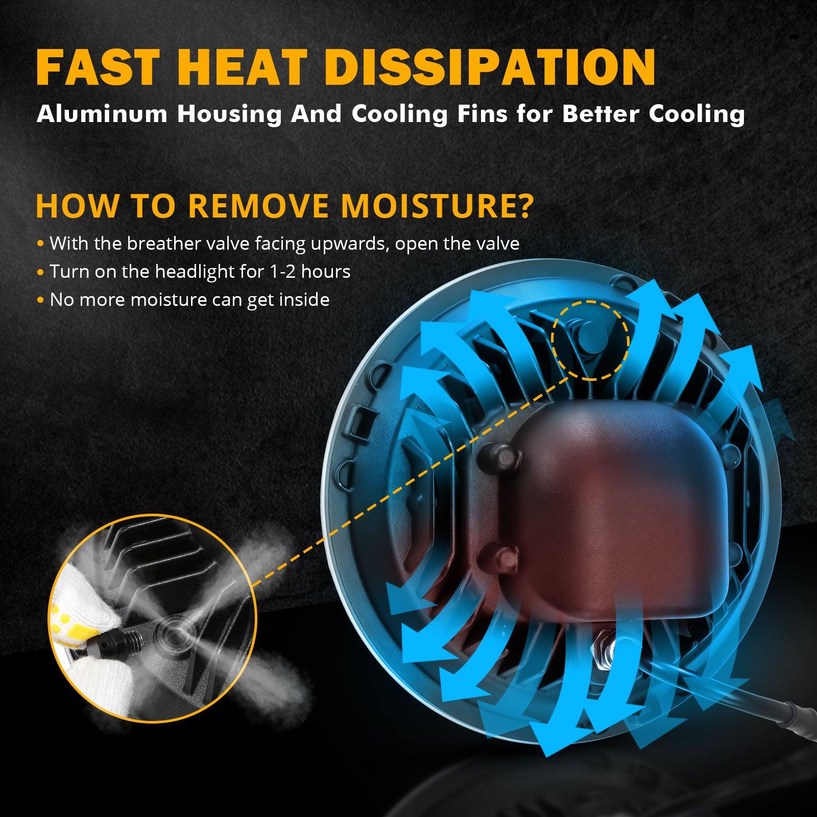 Durable Material and Long Lifespan: 5.08 lb/pair.Our 7inch led Headlights are made of durable PC lens on the front, which will not yellow after long-term use and maintain high light transmittance. The aluminum base on the back can dissipate heat more efficiently and withstand stronger impacts.Our 7inch led headlights can resist moisture, which means they have 10 times longer lifespan than others.