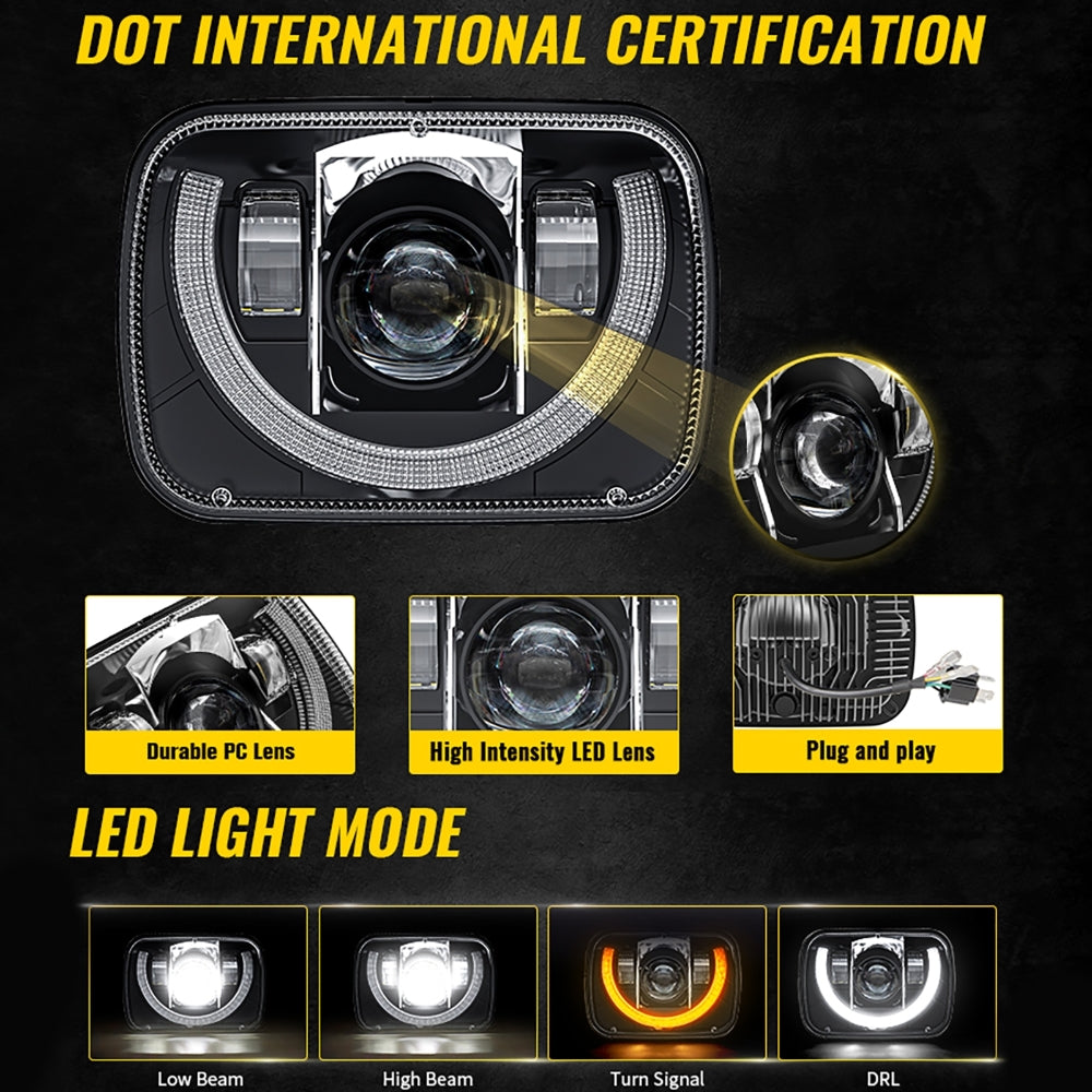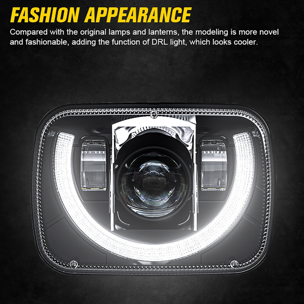 7x6 Inch Sealed Beam LED Headlights with Hi-Lo Beam & Amber Turn Signal White DRL for Jeep Cherokee XJ/Wrangler YJ/Comanche MJ