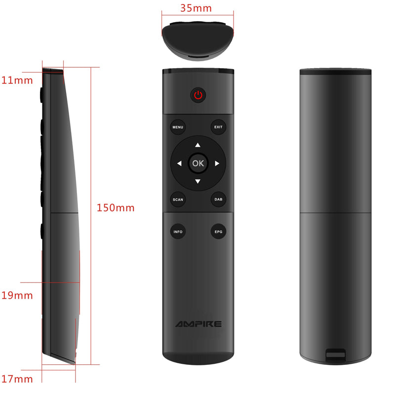 Découvrez la _AMPIRE Fernbedienung für den DVBT1000, la télécommande indispensable pour contrôler votre décodeur DVBT1000 avec facilité et précision. Conçue pour offrir une utilisation intuitive, cette télécommande ergonomique mesure 180x19x35mm, ce qui la rend parfaitement adaptée à votre main.
