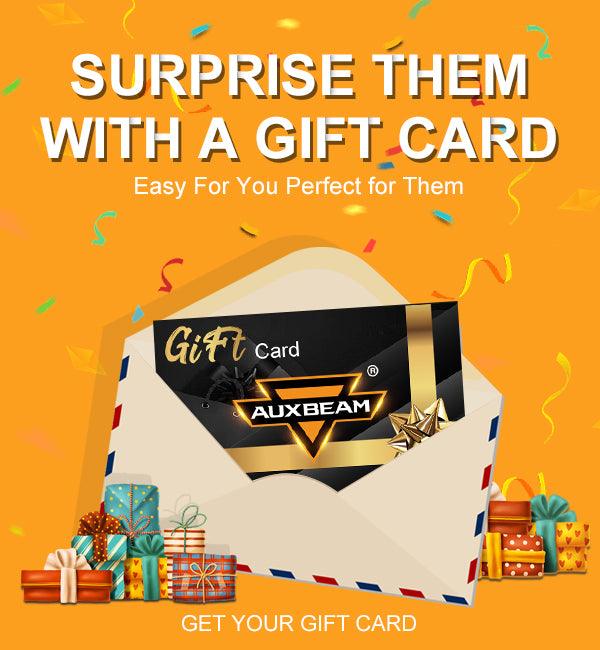 Thinking of a gift idea and not sure what to get? An Auxbeam E-Gift Card is the perfect choice for you. The Auxbeam online store has a great selection of high quality Off-Road Led lights, Led headlight bulbs, switch panels and more. So whether you are shopping for a holiday, birthday or other important occasion, an Auxbeam E-Gift Card lets them choose exactly what they want.