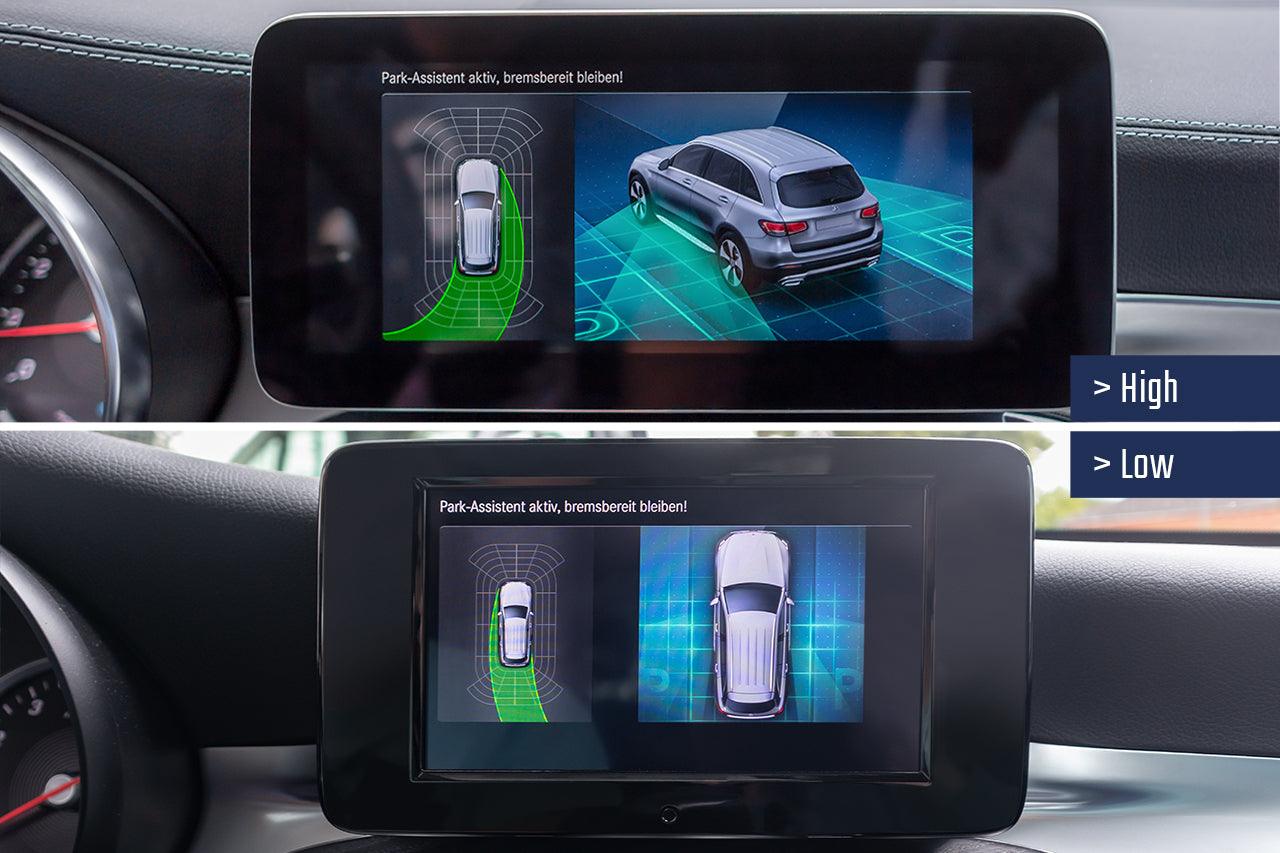 Ce kit est compatible avec les véhicules à partir de l'année modèle 2020. Pour les modèles 2019 et antérieurs, veuillez opter pour l'article 49241-X. Il permet également l'installation d'une caméra de recul (Code 218) et peut être étendu au stationnement autonome grâce au dongle de codage 46510 en option.