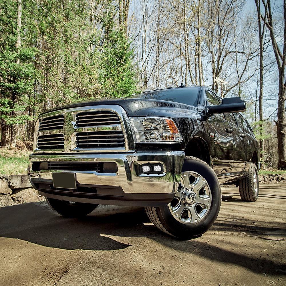 3 Inch LED Pods Lights with Additional Amber Covers & Dual Fog lights Hidden Bumper Mount Bracket for Dodge Ram 2500 3500 2010-2017