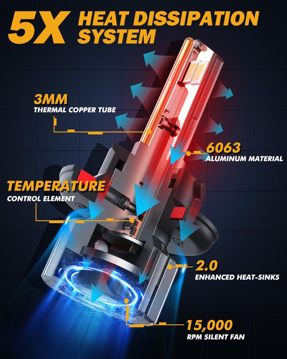- Éclairage ultra-brillant : 20 000 lumens grâce à 24 puces LED Blade-S, offrant jusqu'à 600 % de lumière supplémentaire par rapport aux halogènes.