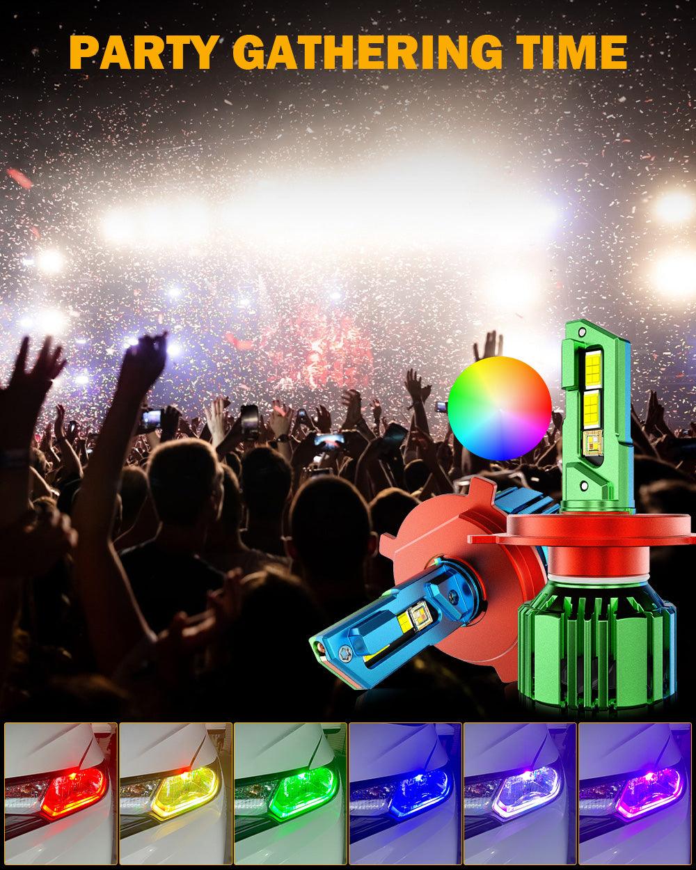 🆕H4/9003 RGB LED Headlight Bulbs/DRL/Fog Light R7 Series 70W 25000LM 6500K Cool White + RGB Remote Control | 2 Bulbs
