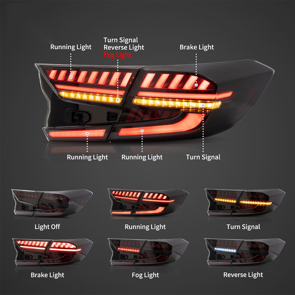 LED Tail Light Assembly With Full LED Dynamic Welcome Lighting For 2018-2022 Honda Accord 10th Gen