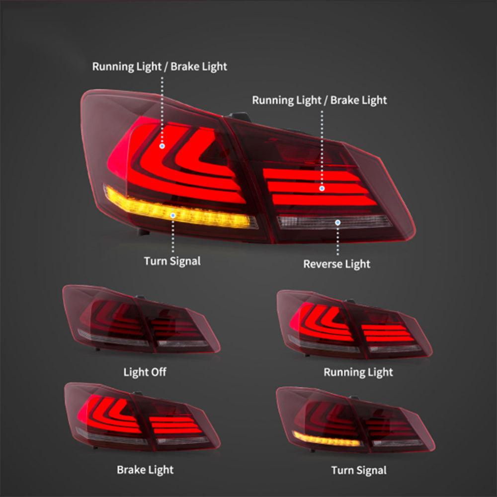 LED Tail Light Assembly With Sequential Turn Signal For 2013-2017 Honda Accord 9th Gen Sedan