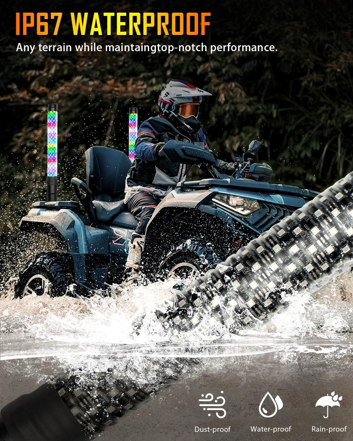 New 1.9FT LED RGB Whip Lights with Turn Signal & Brake Light, Bluetooth APP/ Remote Control