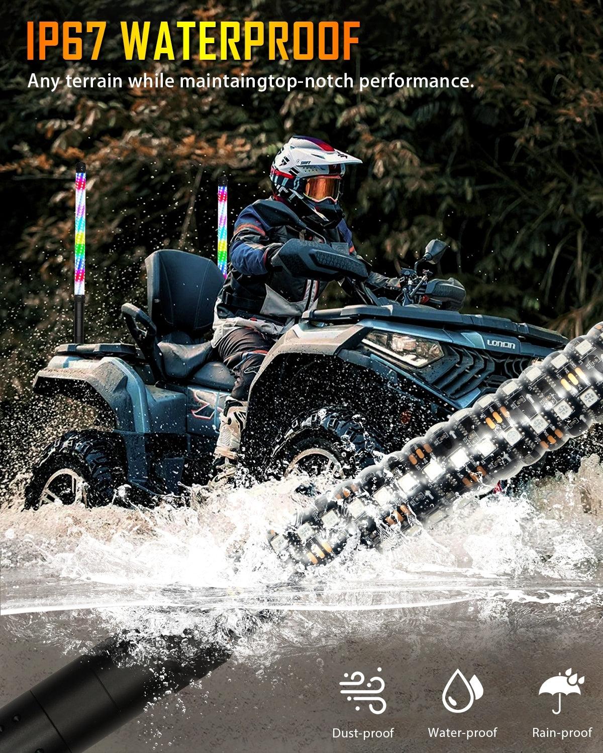 2 Control Modes: Bluetooth APP & remote control, allow you to control your LED antenna whip lights anytime & anywhere.