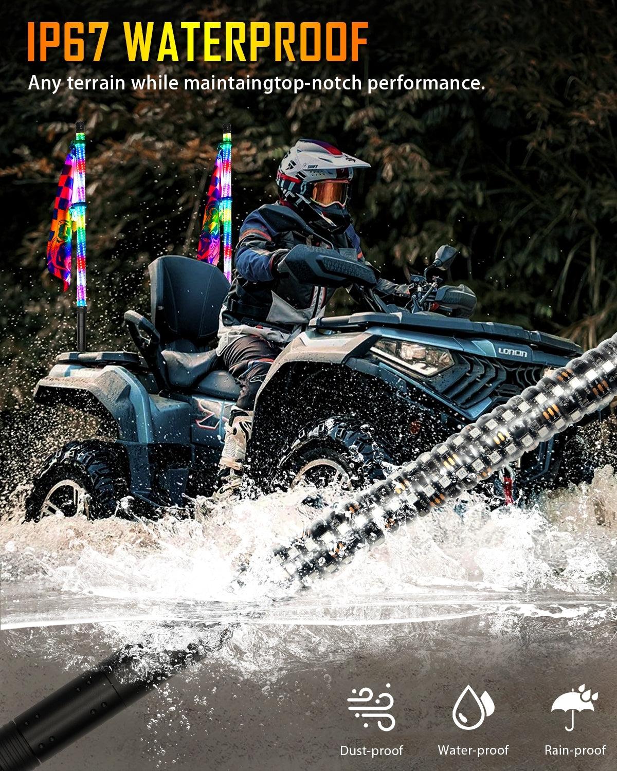 2 Control Modes: Bluetooth APP & remote control, allow you to control your LED antenna whip lights anytime & anywhere.