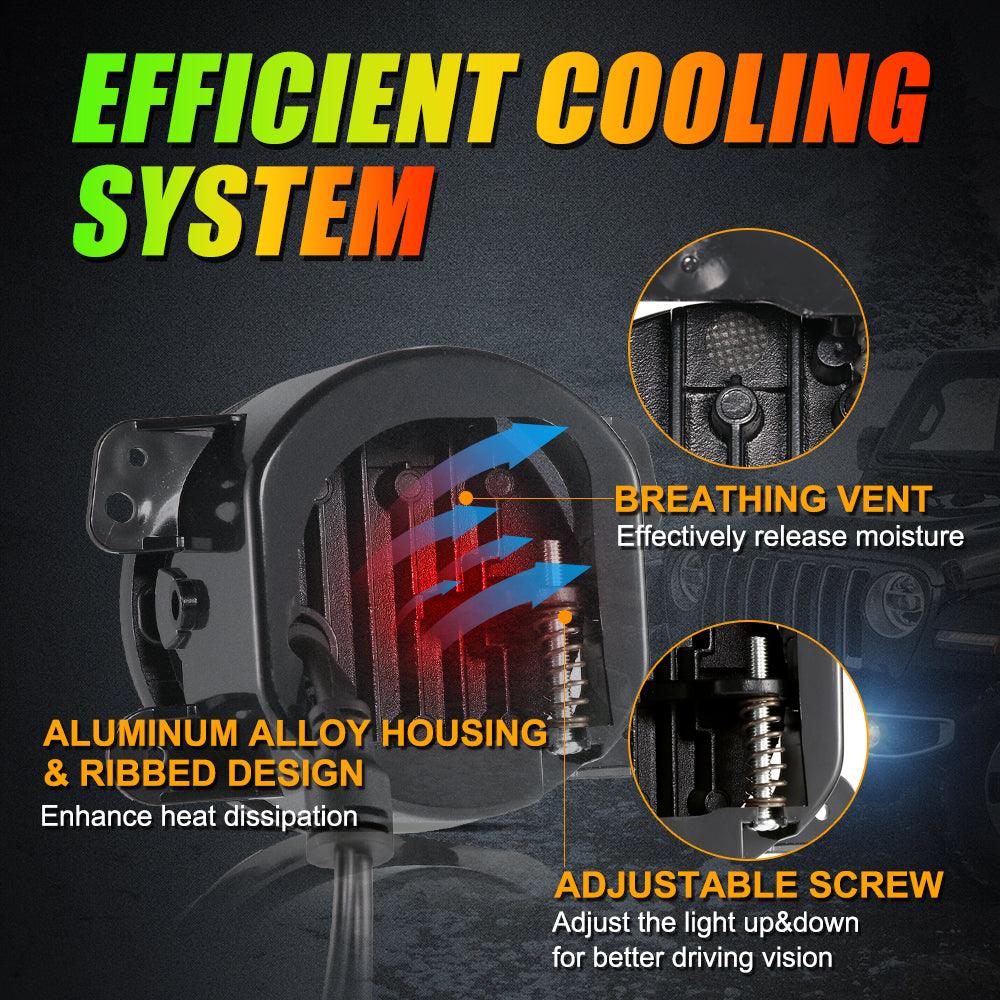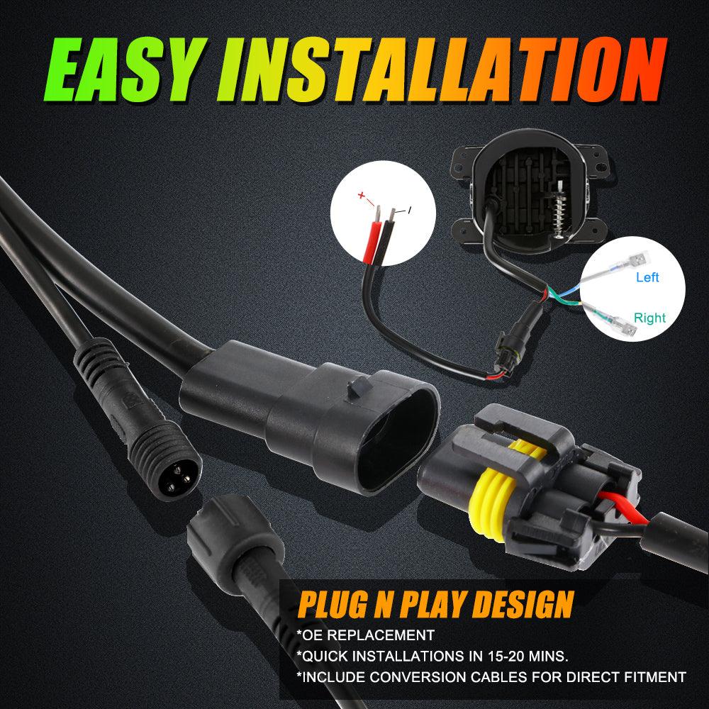 - RGB Fog Light with 3 lighting modes: DRL/ Turn Signal Light/ Fog Light. White daytime running light & amber turn signal light modes provide the best driving experience in foggy environments to ensure driving safety. The white fog light provides a brighter & crisper light output for clear visibility, dramatically improving light projection distance.