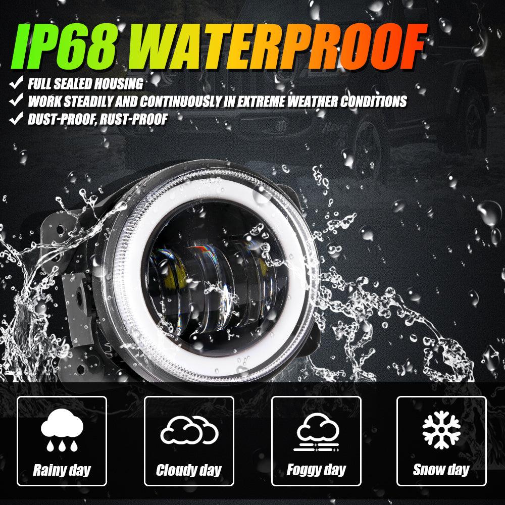 (2pcs/set) 4 Inch LED Fog Lights with RGB Halo Ring & Turn Signal Light, Bluetooth Control for Jeep Wrangler JK 2007-2017
