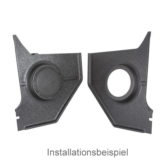 Le RETROSOUND KP-F39-6466 est une paire de panneaux de protection en plastique ABS très stable et pouvant être peint pour haut-parleur coaxial S-62. Ces panneaux conviennent à la Ford Mustang (non décapotable) de l'année de construction 1964 à 1966. L'alignement des haut-parleurs a été optimisé du point de vue de l'ingénierie sonore et adapté au véhicule.