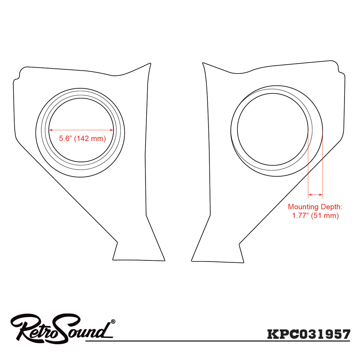Ces panneaux de protection RetroSound® se montent facilement dans votre Chevrolet classique de 1957 et s'adaptent à la plupart des haut-parleurs de 6,5 pouces. Le support de haut-parleur est incliné pour diriger le son vers le haut, vers l'auditeur, et non vers vos pieds. Le kit comprend des panneaux de protection côté conducteur et côté passager.