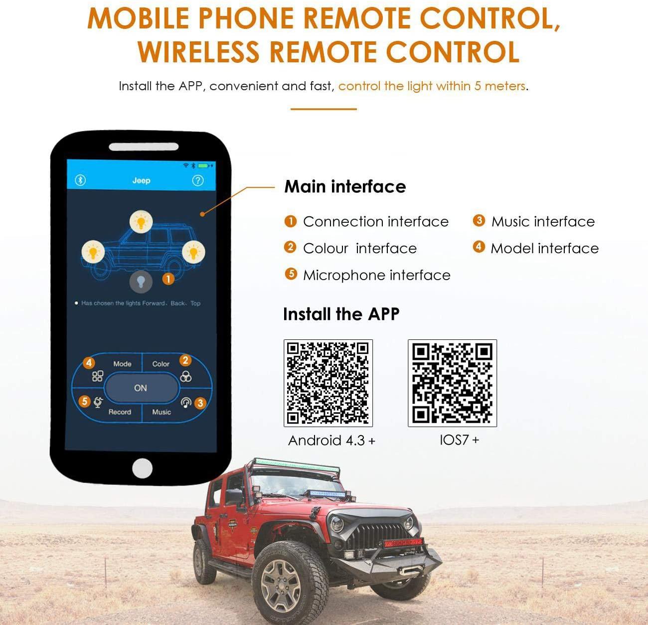 Personalized cool show RGB light & strobe settings are controlled via Bluetooth APP on Android or iPhone,make you enjoy happiness and wild adventure.
