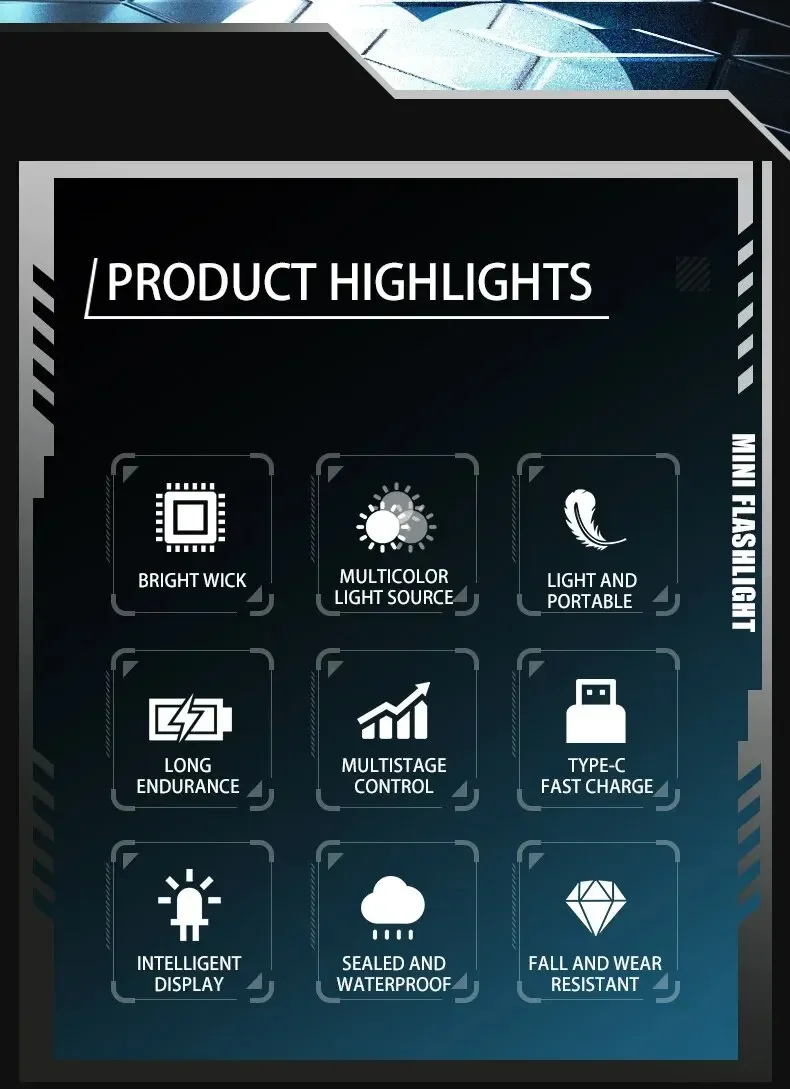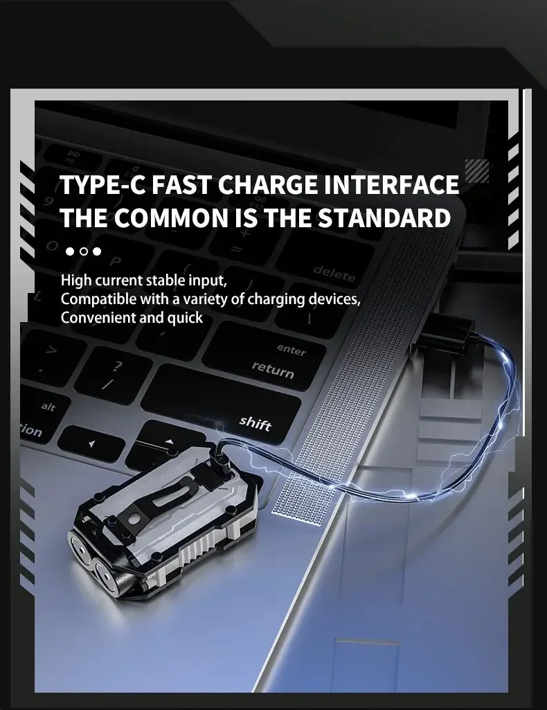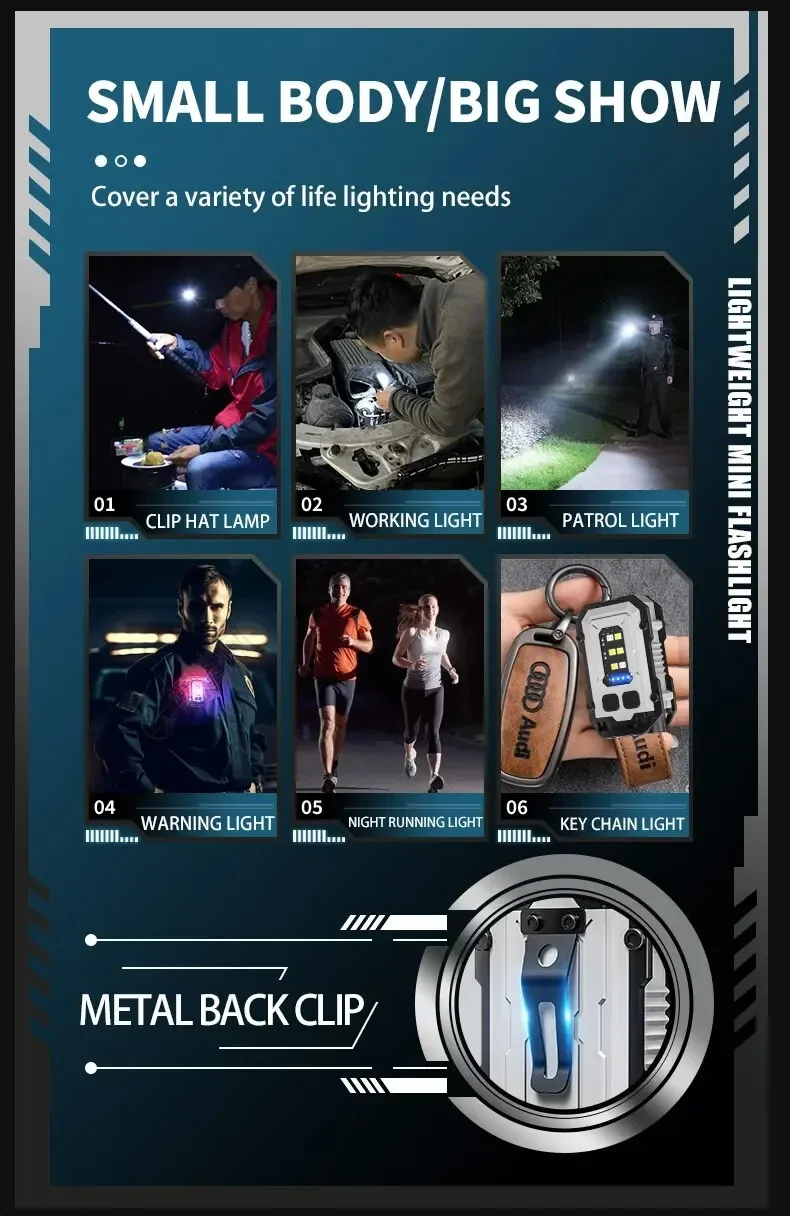 • Rechargeable EDC Mini Keychain Flashlight :Equipped with an EDC Mini keychain, this flashlight is not only compact but also convenient to carry around, perfect for everyday use.