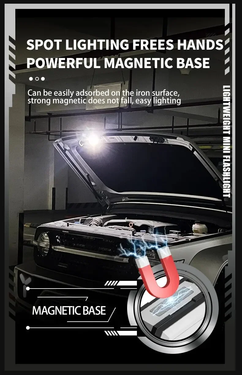 • Powerful Magnetic COB LED :The powerful magnetic COB LED design allows for easy attachment to metallic surfaces, providing hands-free lighting when needed.