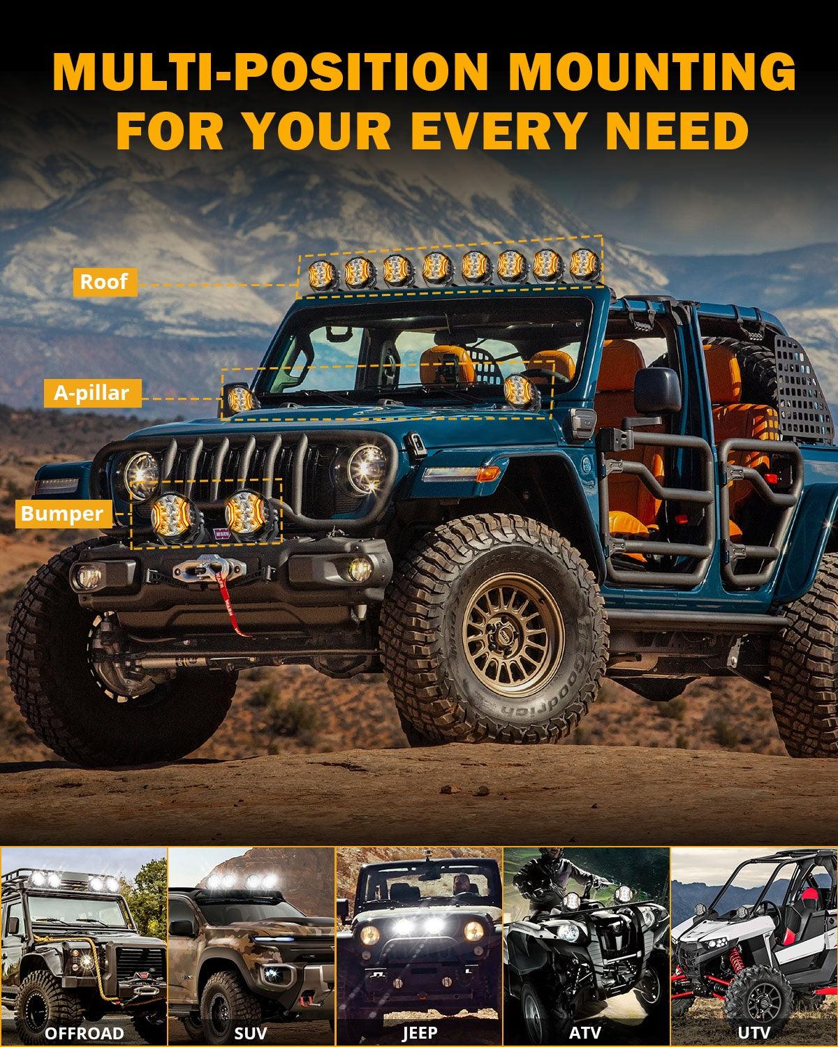 Wide Application: Our LED pod lights are incredibly versatile and can be mounted on a variety of surfaces, including the roof rack, bull bar, headache rack, and running bar. They're suitable for use with almost all off-road vehicles, motorcycles, ATVs, UTVs, SUVs, construction vehicles, trucks, buses, pick-ups, marine vessels, boats, and more. With an operating voltage of 9-24V, our LED pod lights are a reliable and efficient lighting solution for all your needs.