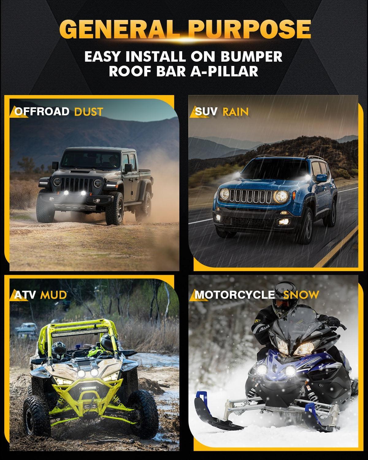 Easy to Install: Snap-on design, these 4" covers securely fasten to the ff-road lights, preventing vibration and falling off, so swapping them out is quick and simple.